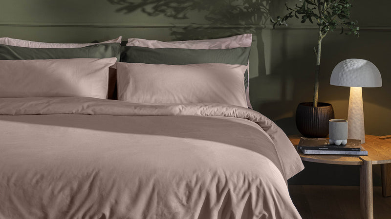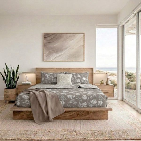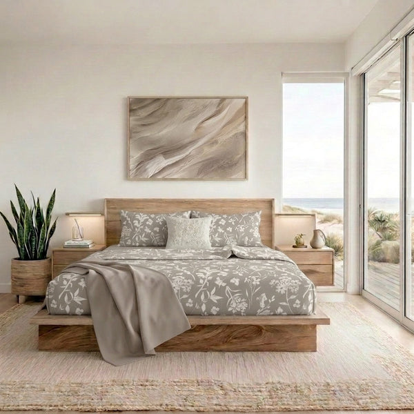 Completo Letto Matrimoniale in Cotone con Stampa - Fantasia Blossom Taupe