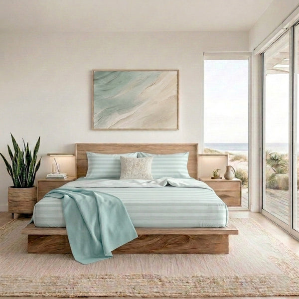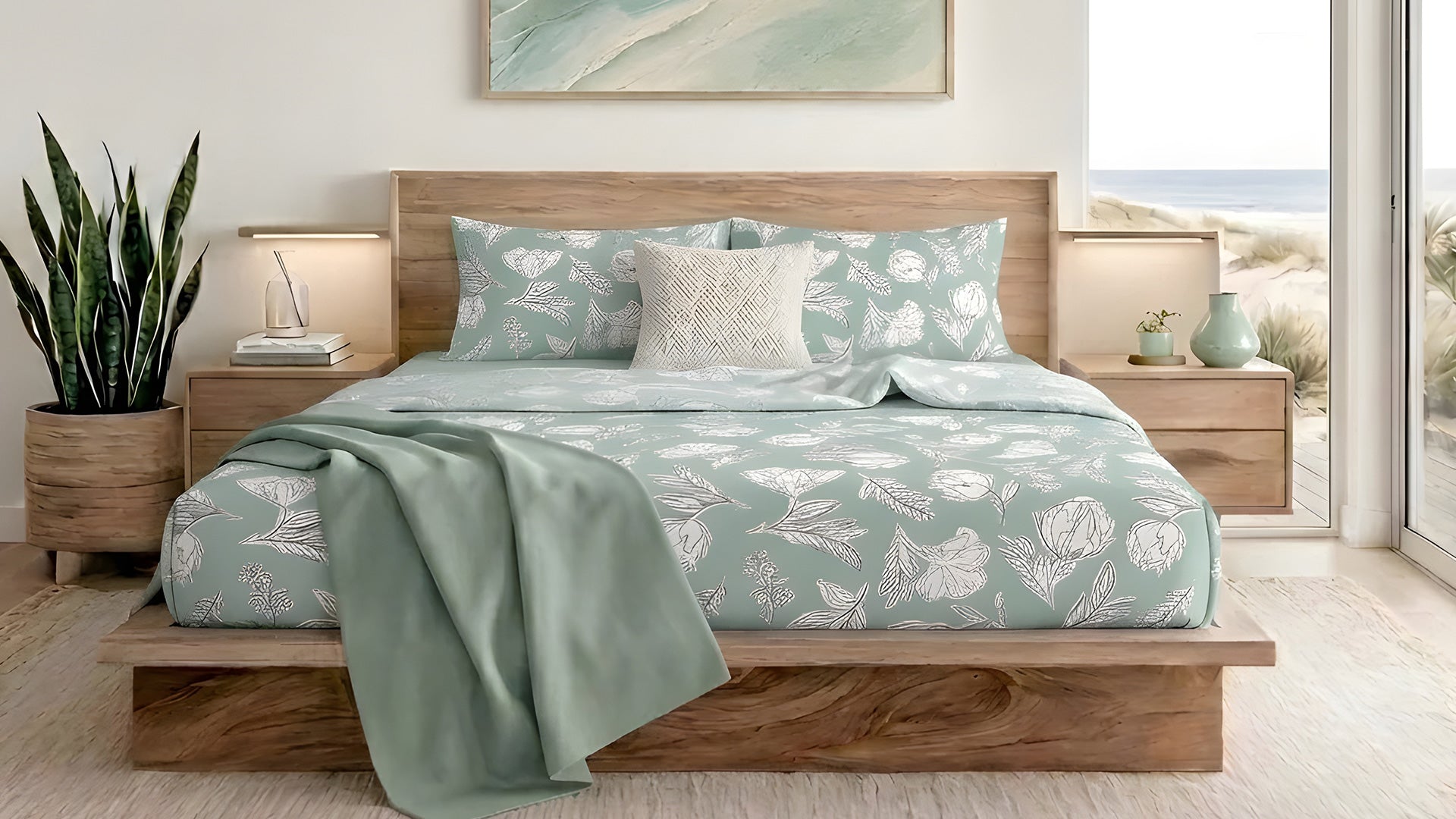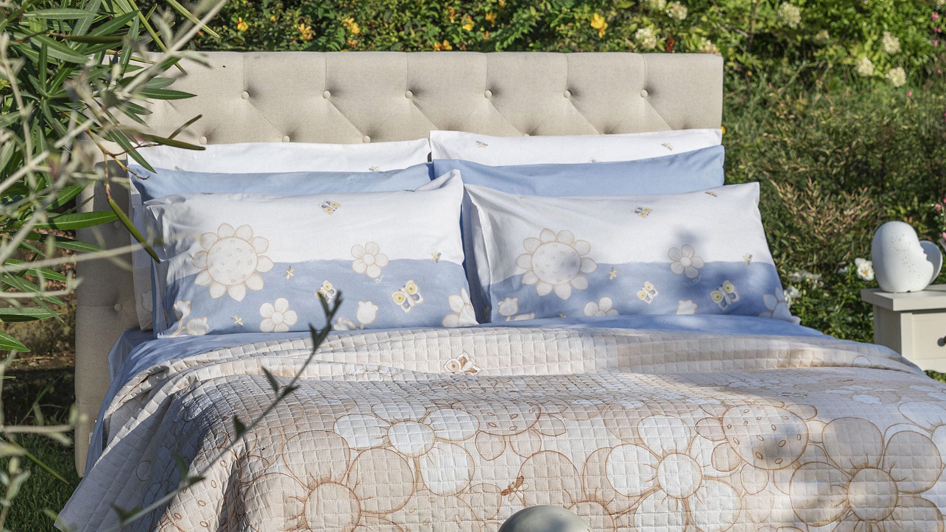 Completo Letto Matrimoniale in Cotone con Stampa - Fantasia Blossom Aqua