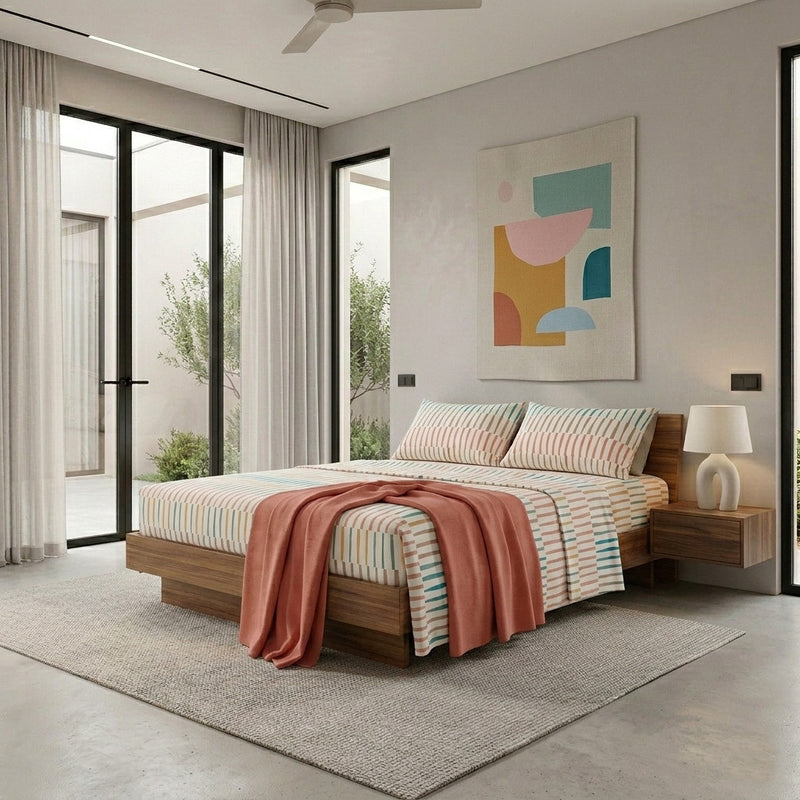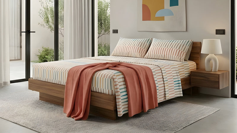 Completo Letto Matrimoniale in Cotone con Stampa Niord Multicolor
