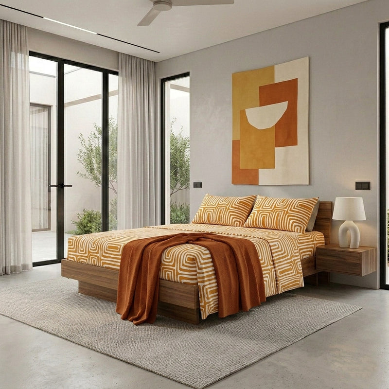 Completo Letto Matrimoniale in Cotone con Stampa Danjel Rust