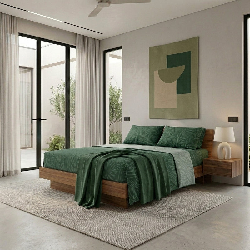 Completo Letto Matrimoniale in Cotone con Stampa Gylfe Green