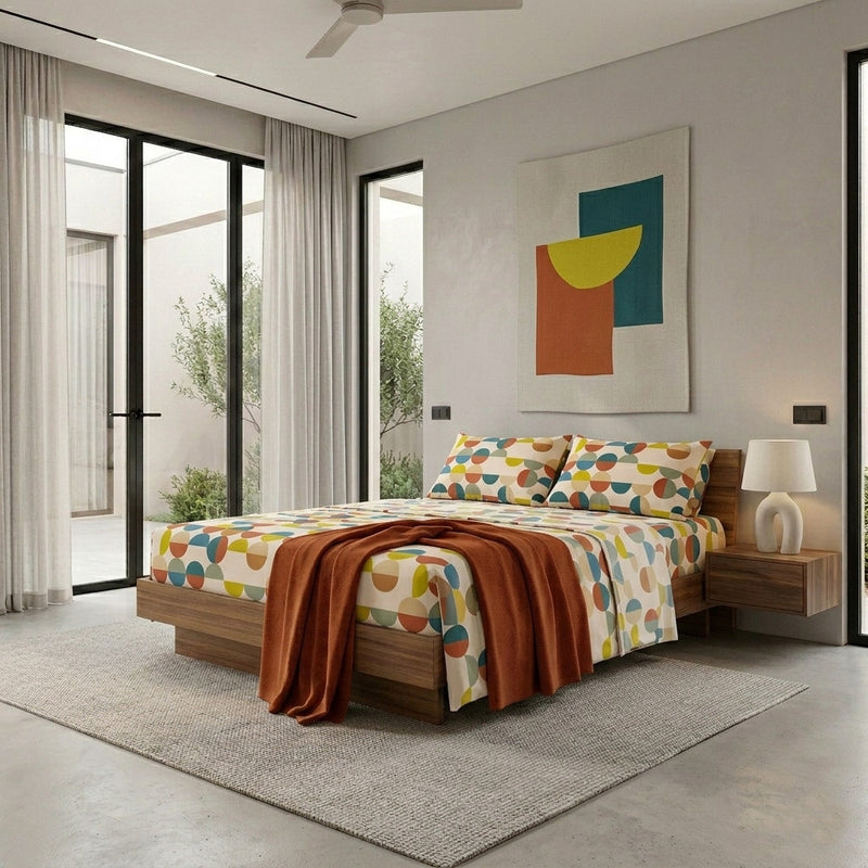 Completo Letto Matrimoniale in Cotone con Stampa Kiljan Multicolor