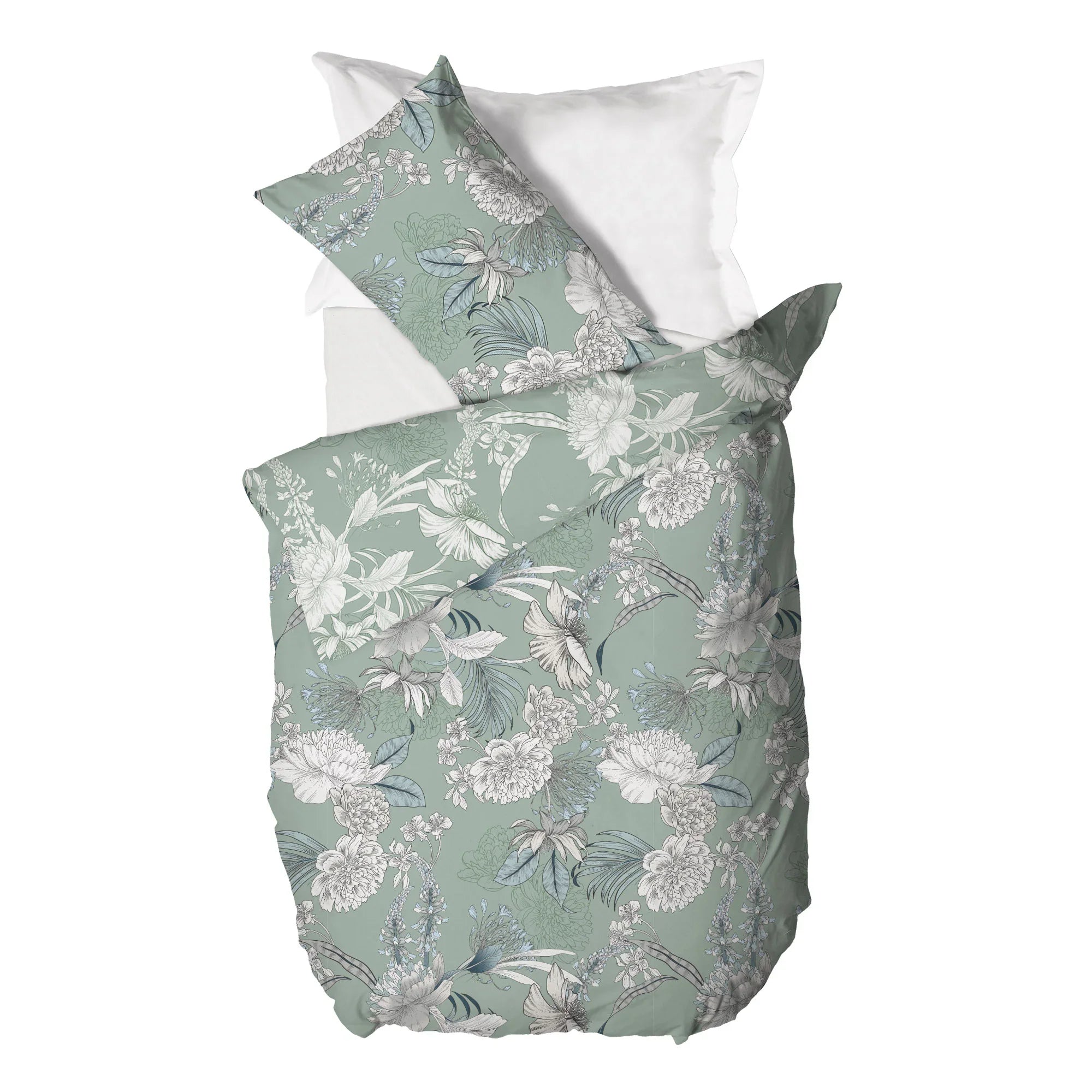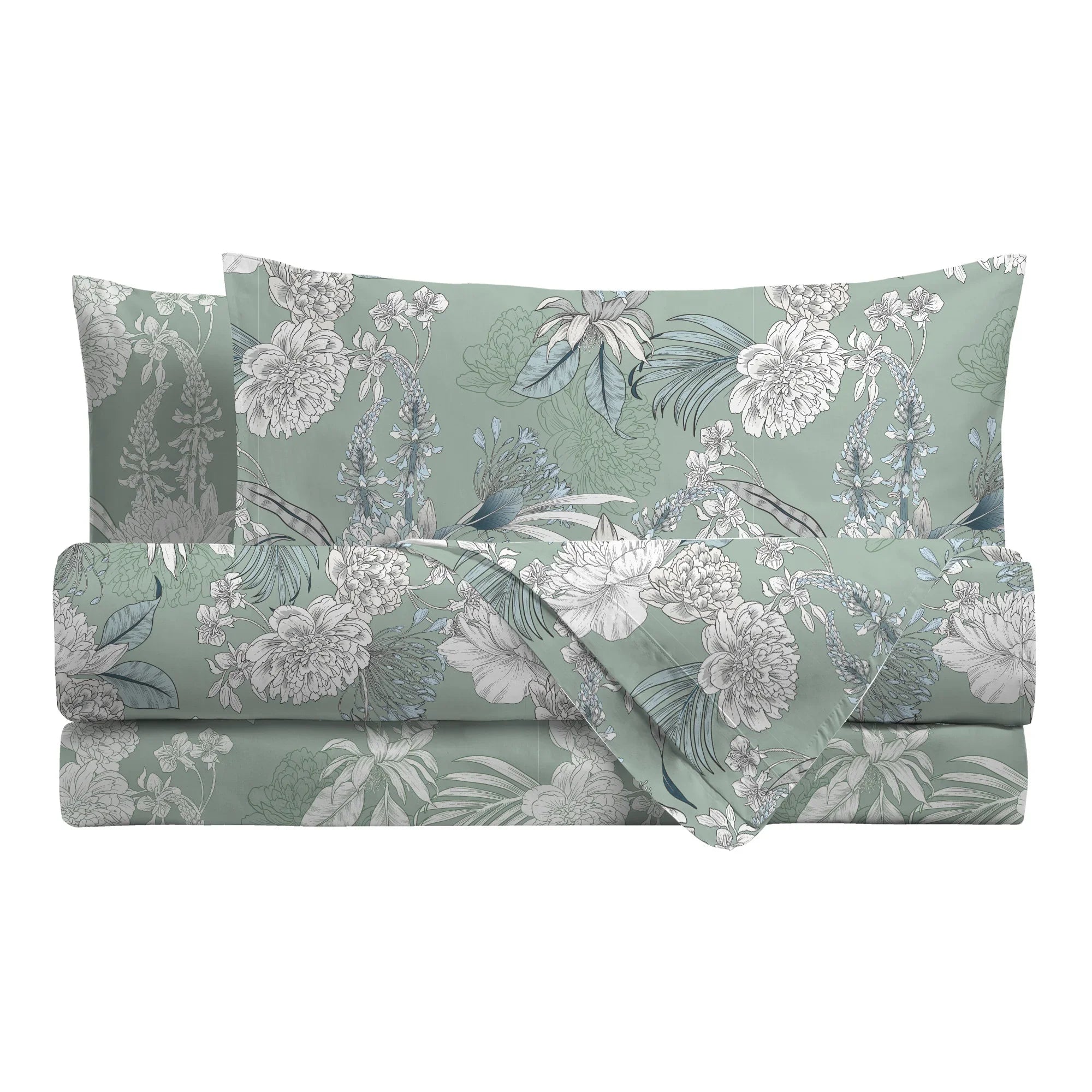 Parure Copripumino Piazza e Mezza con Stampa - Fantasia Absinthe Ellis Verde