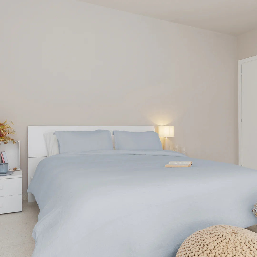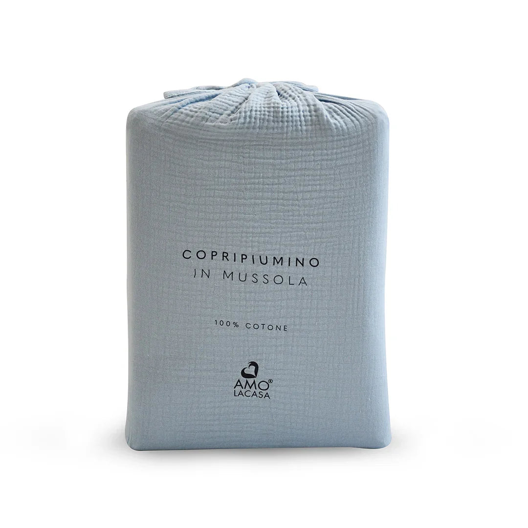Parure Copripiumino Piazza e Mezza Mussola di Cotone Tinta Unita Azzurro