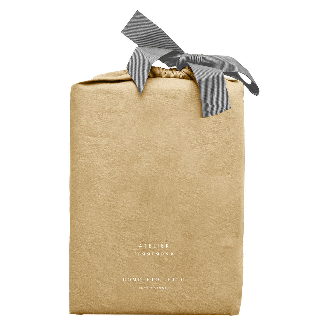 Completo Letto Matrimoniale in Cotone Atelier Fragrance Tinta Unita Ochre