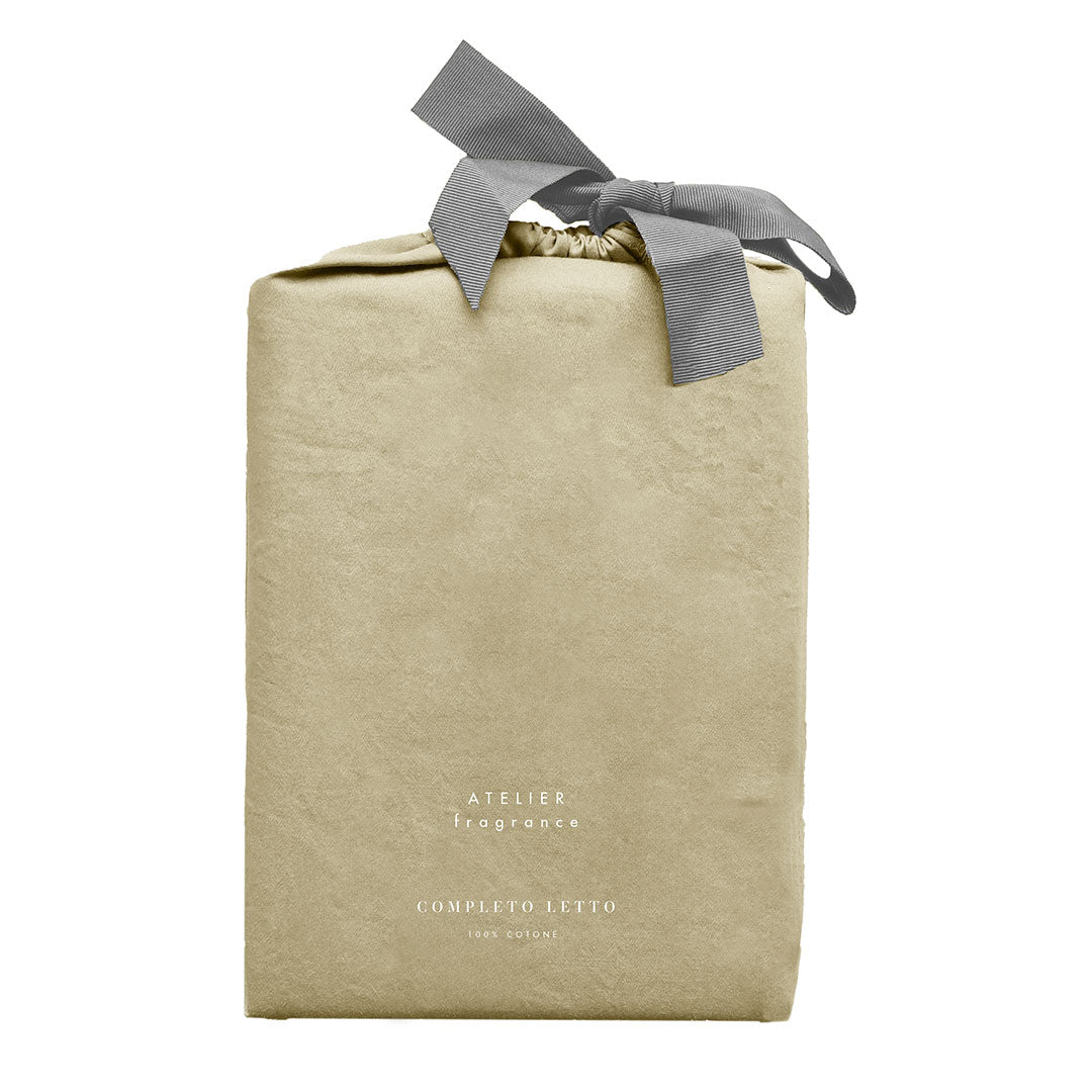 Completo Letto Singolo in Cotone Atelier Fragrance Tinta Unita Sand