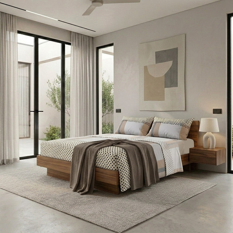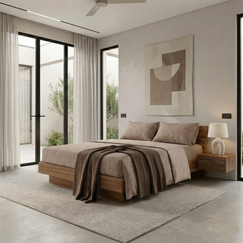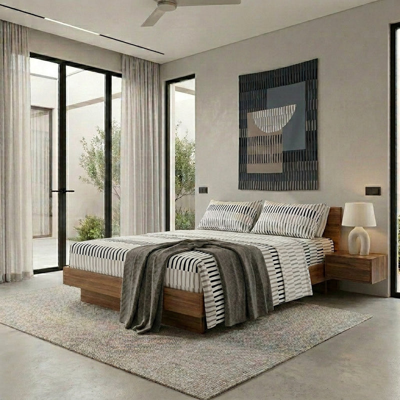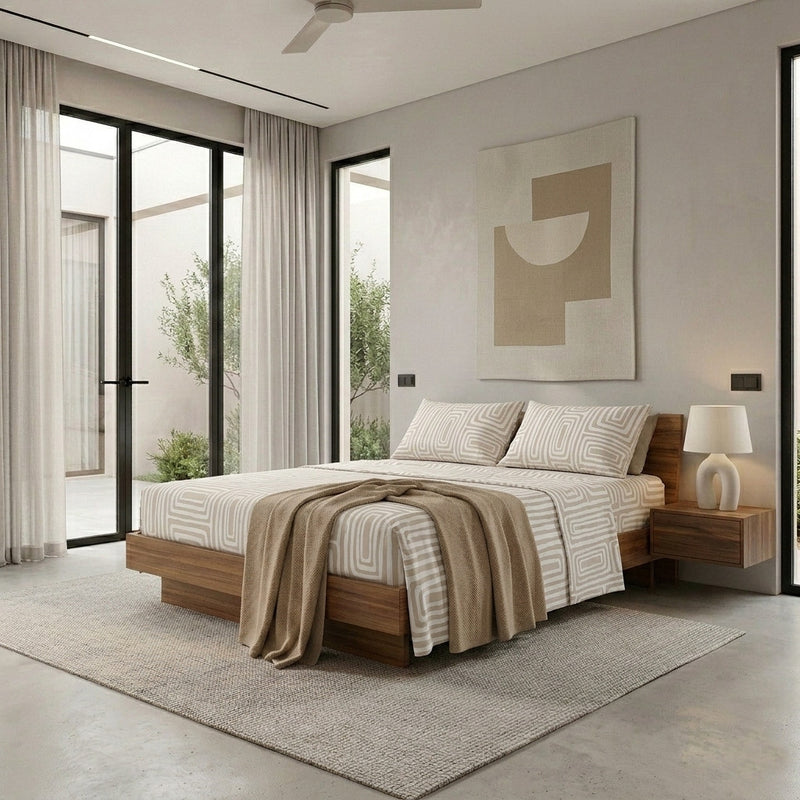 • lenzuola matrimoniali moderne → linee pulite e colori neutri