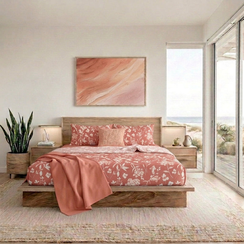Completo Letto Matrimoniale in Cotone con Stampa - Fantasia Fedora Coral