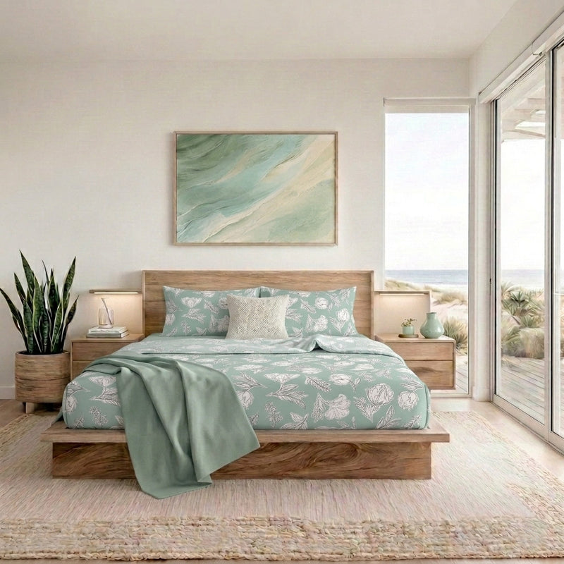 Completo Letto Matrimoniale in Cotone con Stampa - Fantasia Blossom Aqua