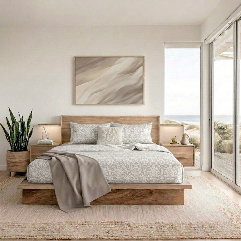 Completo Letto Matrimoniale in Cotone con Stampa Sjul Beige
