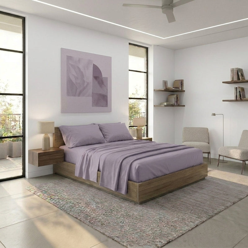 Completo Letto Matrimoniale in Cotone Atelier Fragrance Tinta Unita Lilac