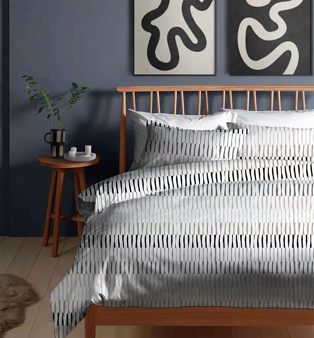 Completo Letto Matrimoniale in Cotone con Stampa Niord Grey
