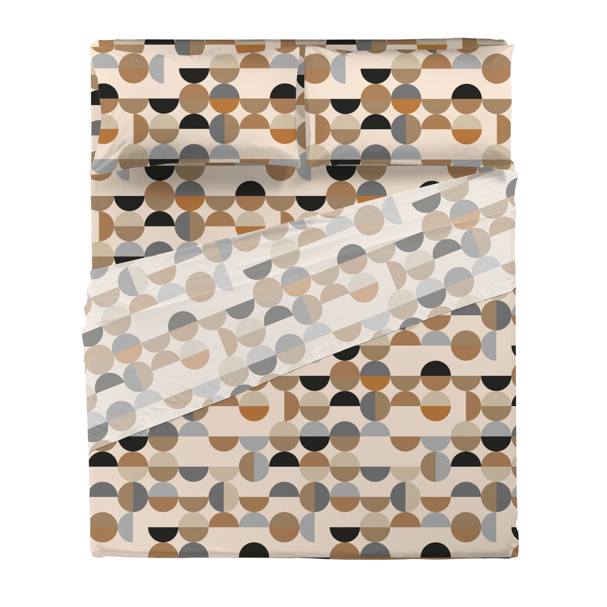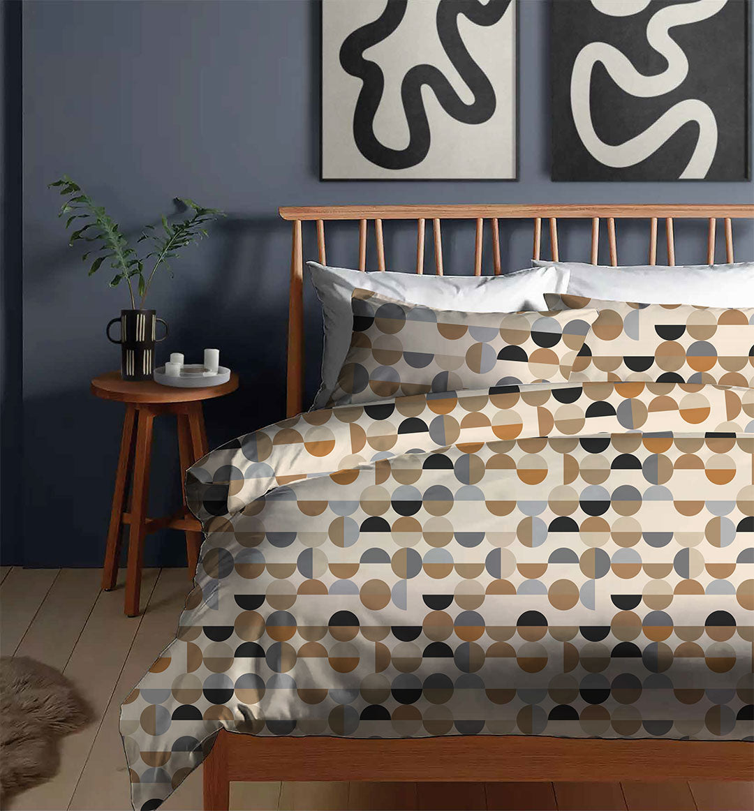 Completo Letto Matrimoniale in Cotone con Stampa Sjul Beige