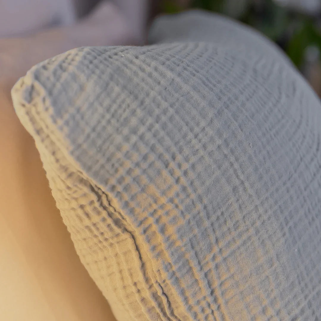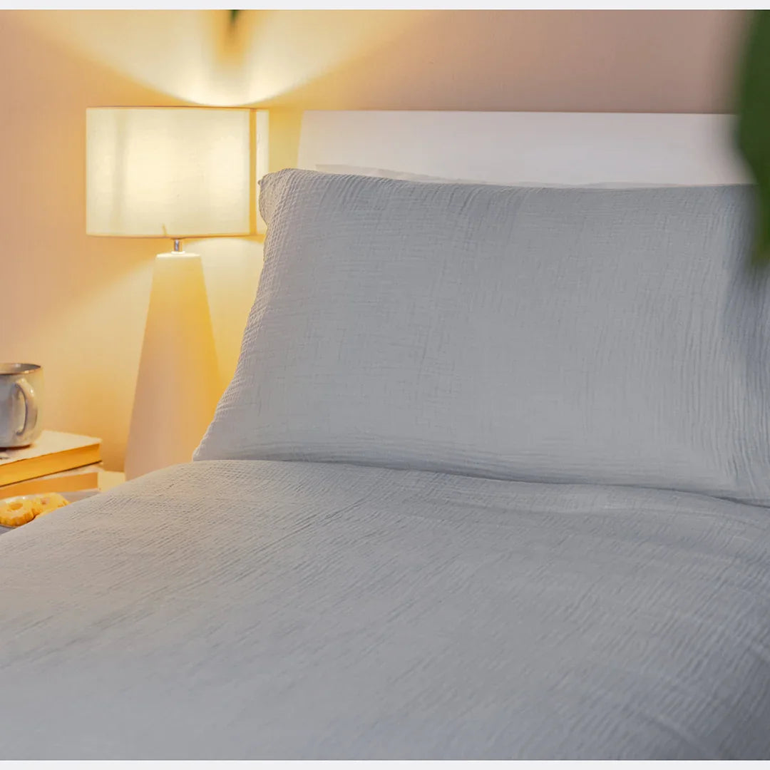 Parure Copripiumino Singolo in Mussola di Cotone Tinta Unita Azzurro