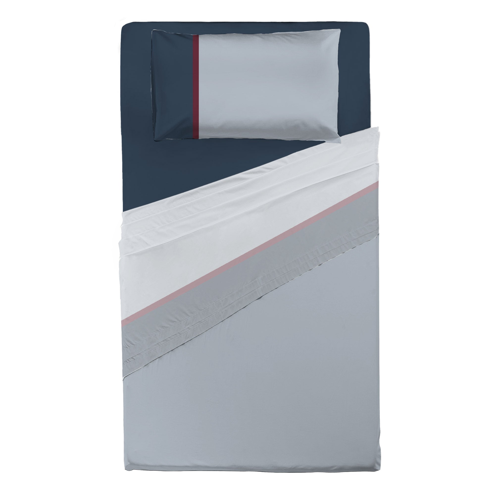 Completo Letto Piazza e Mezza in Cotone con Stampa - Fantasia Tricolor Gin Azzurro