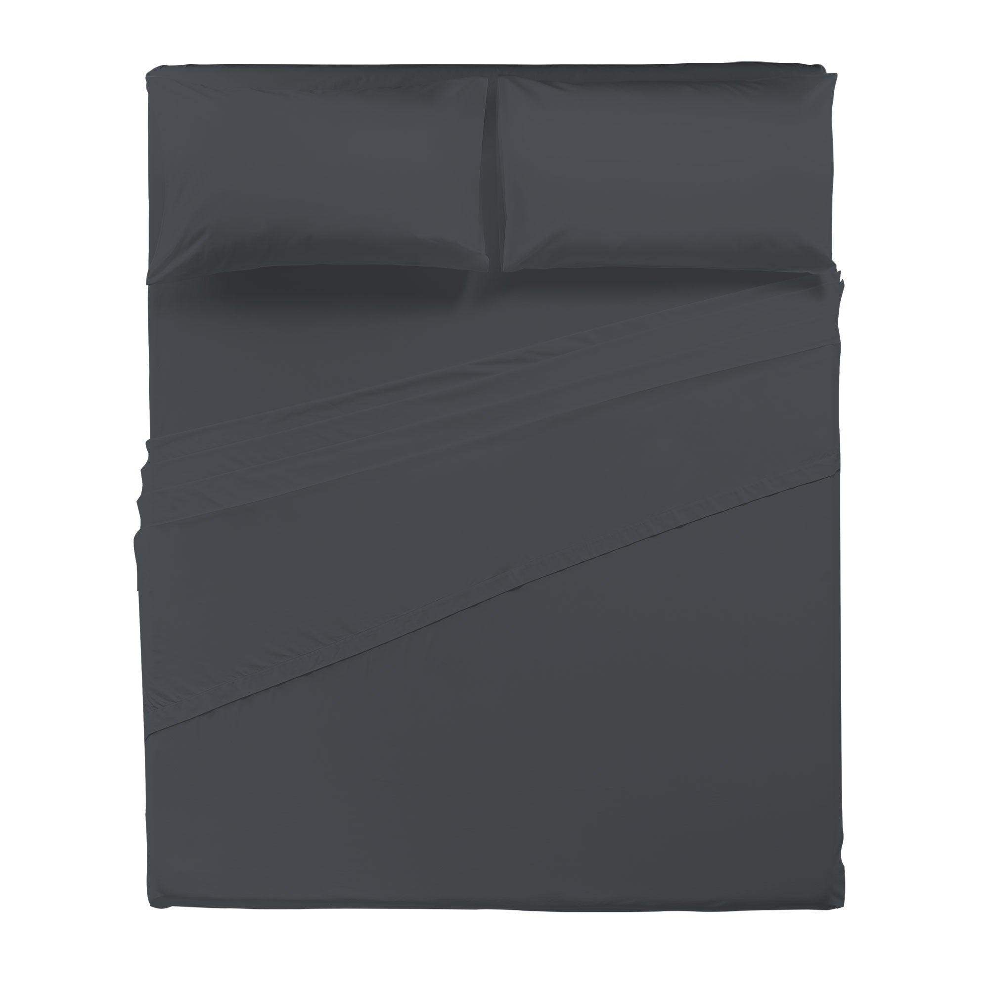 Happidea Completo Letto Matrimoniale in Cotone Tinta Unita Grafite