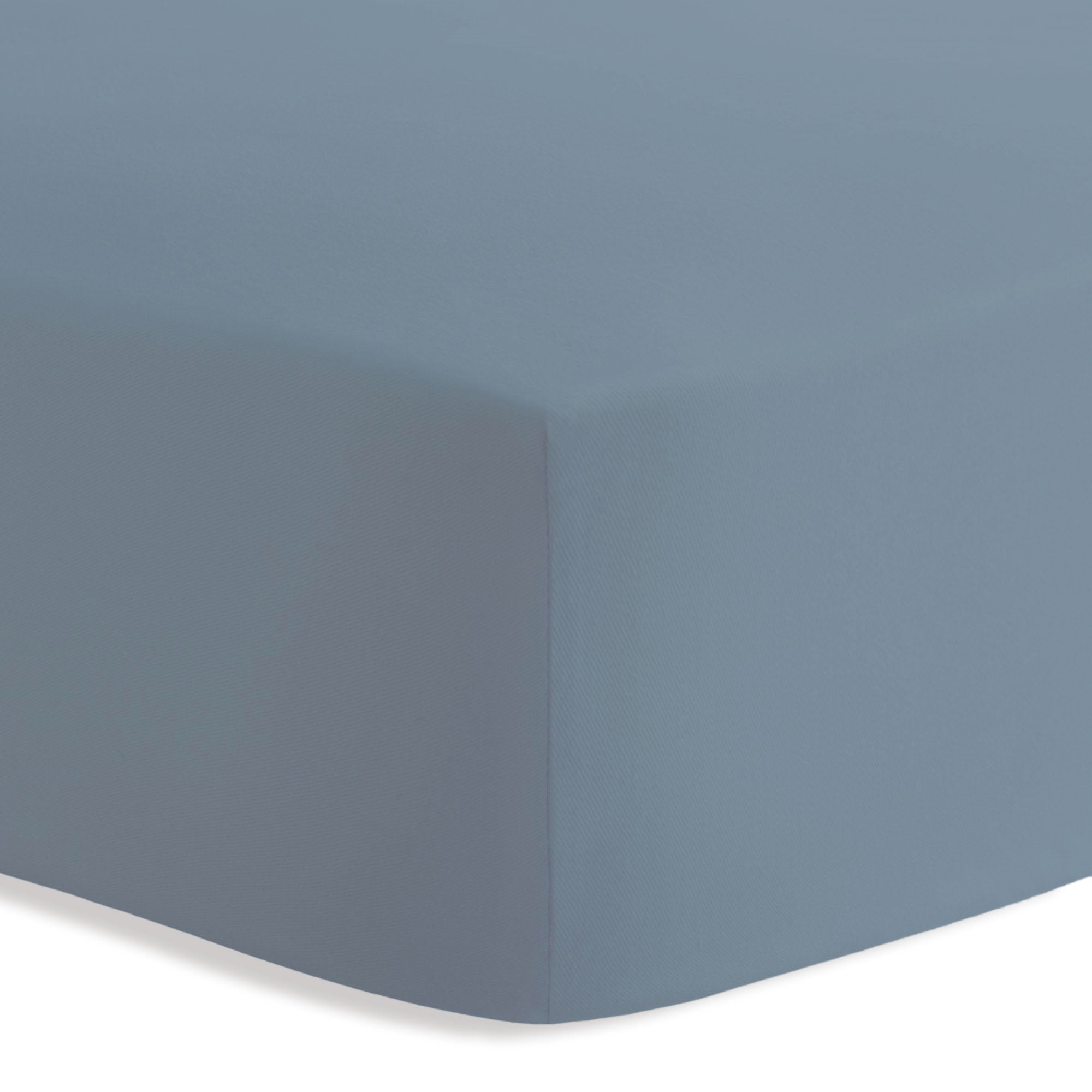 Happidea Lenzuolo Sotto con Angoli Singolo in Cotone Azzurro Tinta Unita Polvere