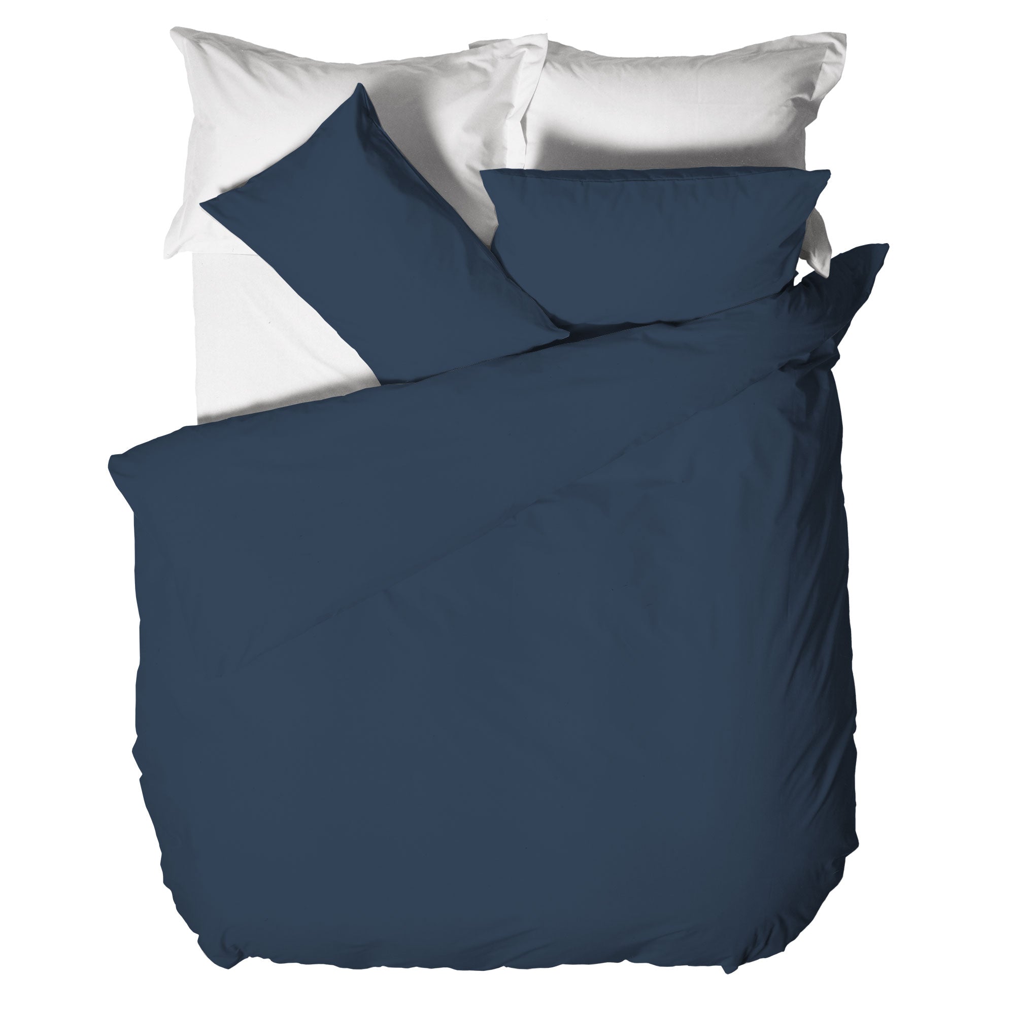 Happidea Parure Copripiumino Matrimoniale in Cotone Tinta Unita Blu Profondo