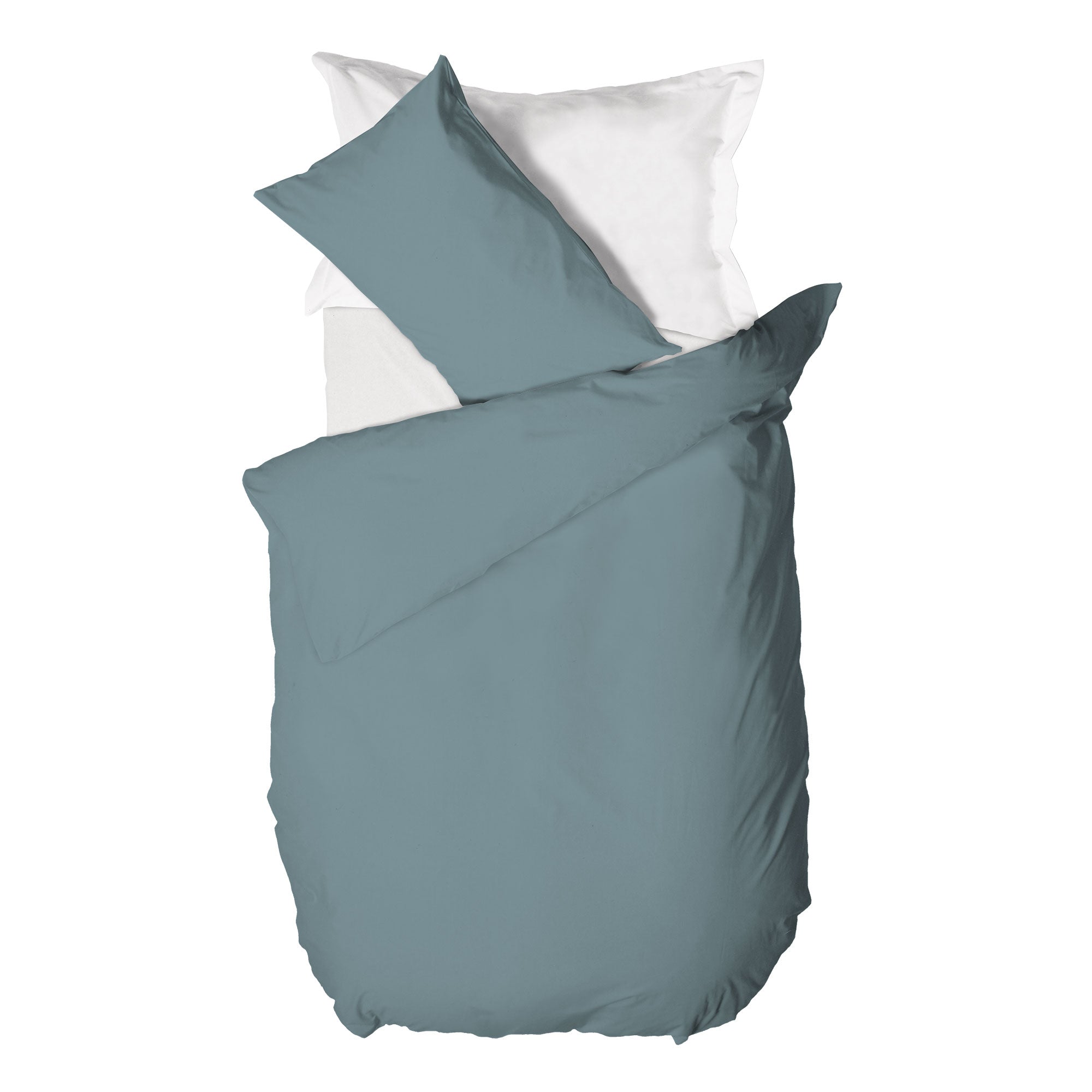 Happidea Parure Copripiumino Piazza e Mezza in Cotone Tinta Unita Tinta Laguna