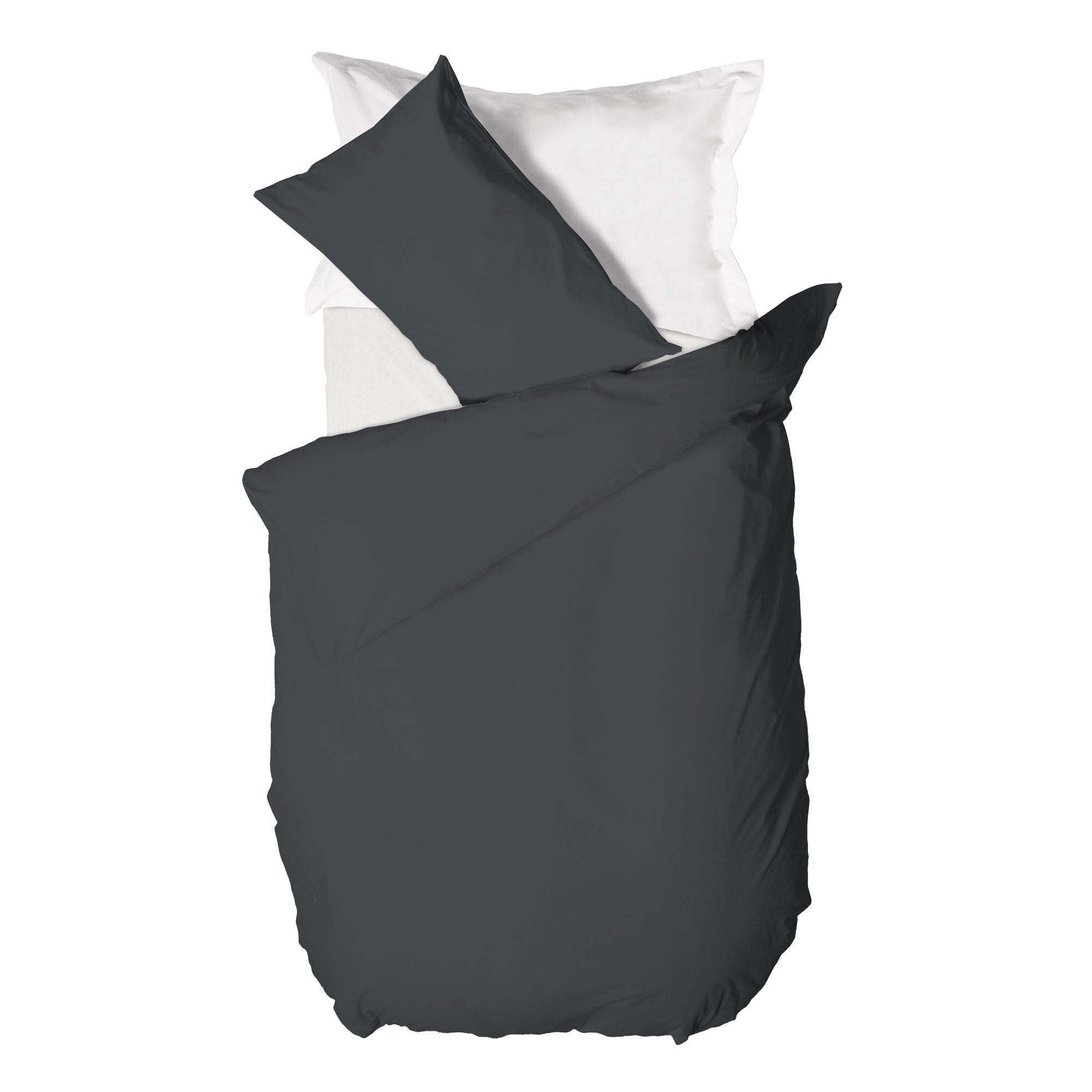 Happidea Parure Copripiumino Singolo in Cotone Tinta Unita Grafite