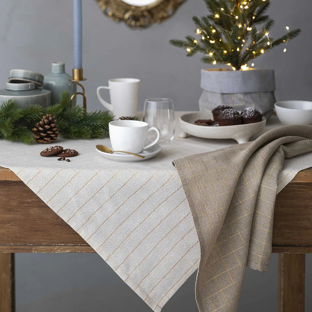 Tovaglia Tinta in Filo 140x240 cm Himalayan Home Grid Beige