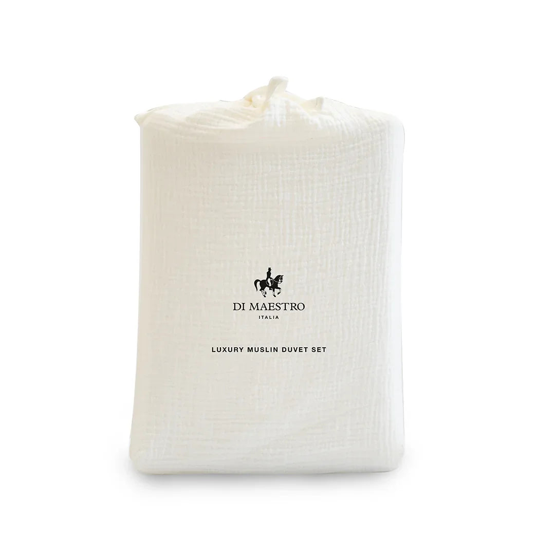 Parure Copripiumino Singolo in Mussola di Cotone Tinta Unita Off White