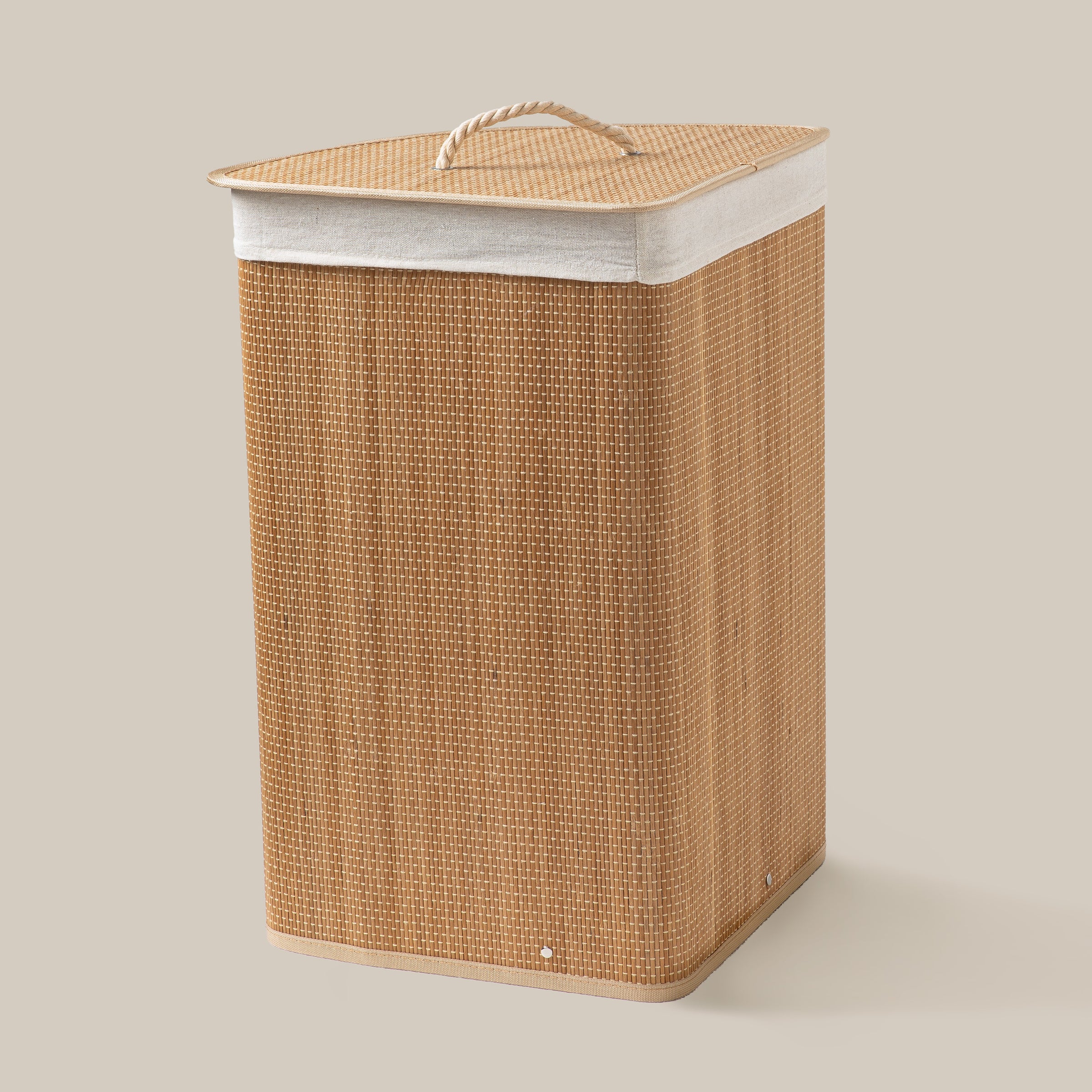 Elegante e funzionale, il cesto lavanderia in bamboo è la soluzione ideale per organizzare il bucato con stile. Realizzato in 100% bamboo naturale, unisce resistenza e leggerezza, adattandosi perfettamente a qualsiasi ambiente della casa, dal bagno alla lavanderia, fino alla camera da letto.