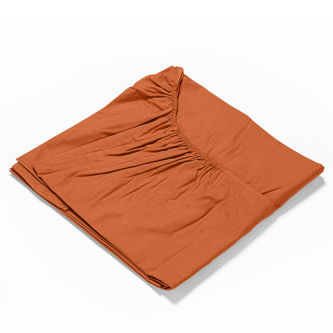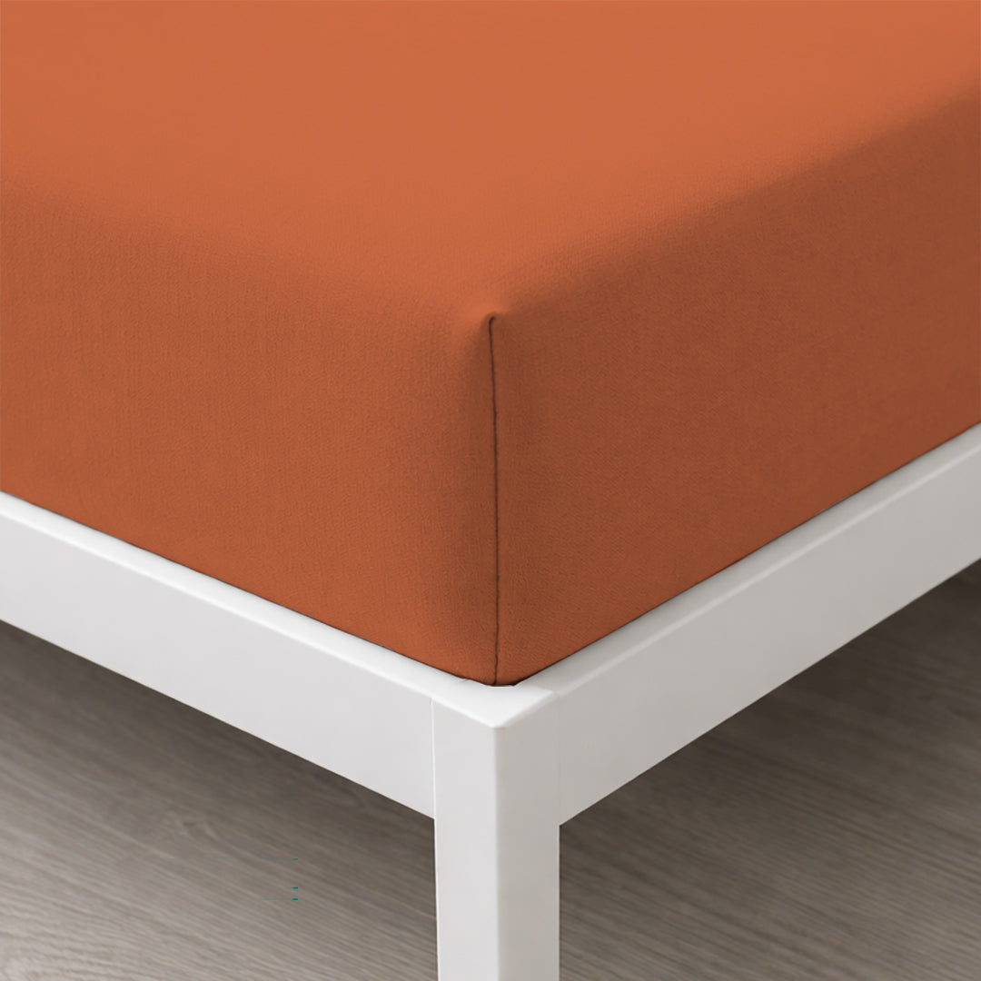 Lenzuolo Sotto con Angoli Matrimoniale in Cotone Tinta Unita Rust