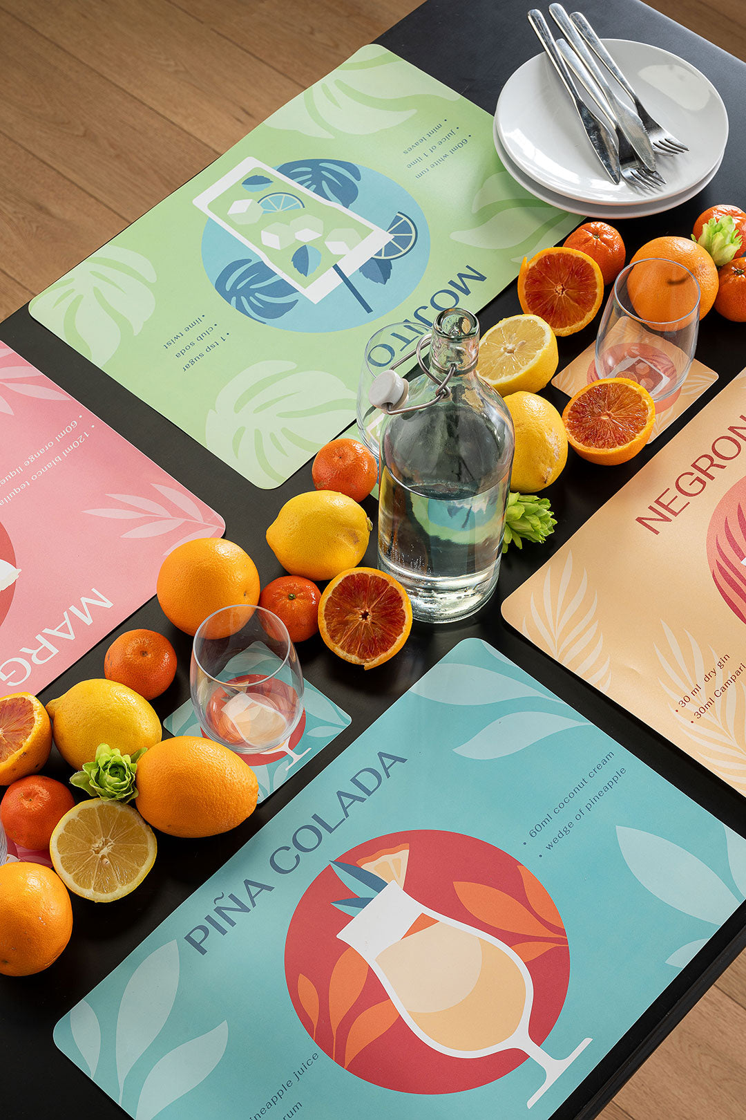 Set coordinato pensato per dare energia alla tavola con uno stile vivace e contemporaneo. Le tovagliette definiscono lo spazio di ogni commensale, proteggono il piano e rendono l’apparecchiatura più ordinata; i sottobicchieri completano l’insieme con un dettaglio pratico, perfetto per bicchieri e tazze. La fantasia Cocktail Multicolor porta colore e personalità, ideale per cene informali, aperitivi e momenti conviviali, ma anche per rendere più allegra la routine di tutti i giorni. Contenuto: 4 tovagliette + 4 sottobicchieri. Linea: Shades Standard