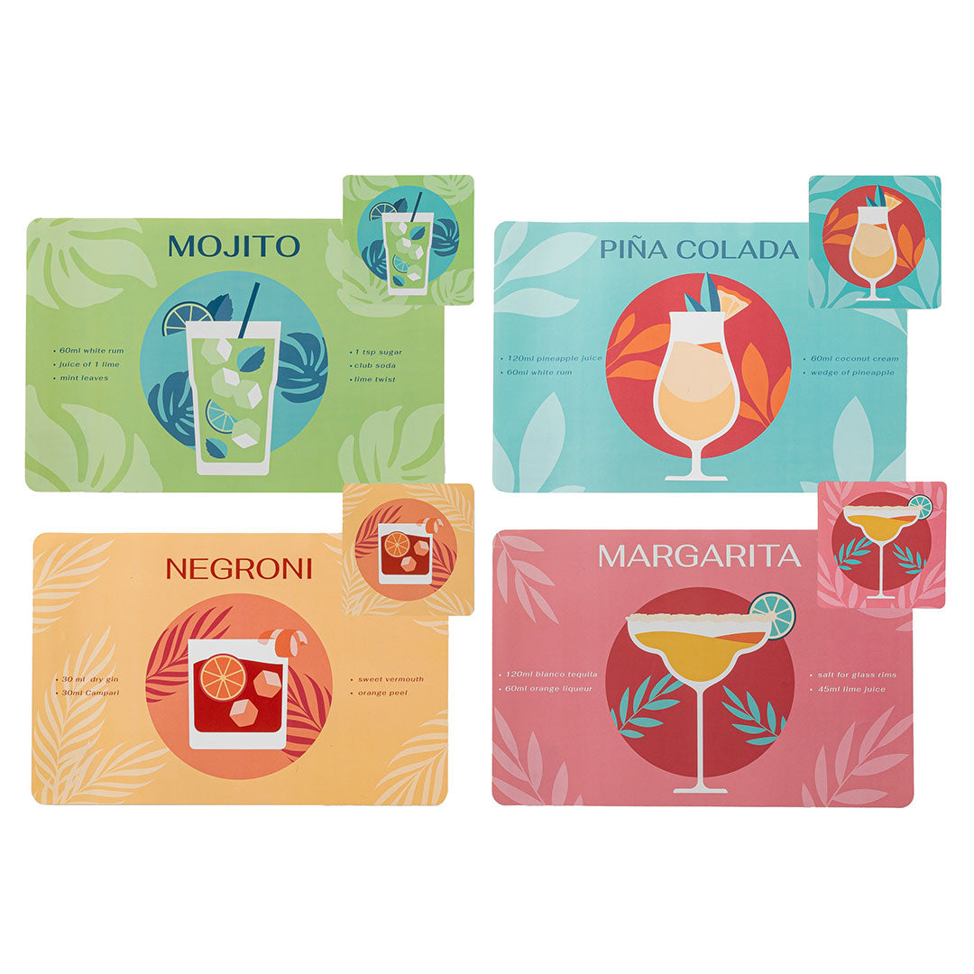 Set 4 Tovagliette + 4 Sottobicchieri Shades Standard Cocktail Multicolor